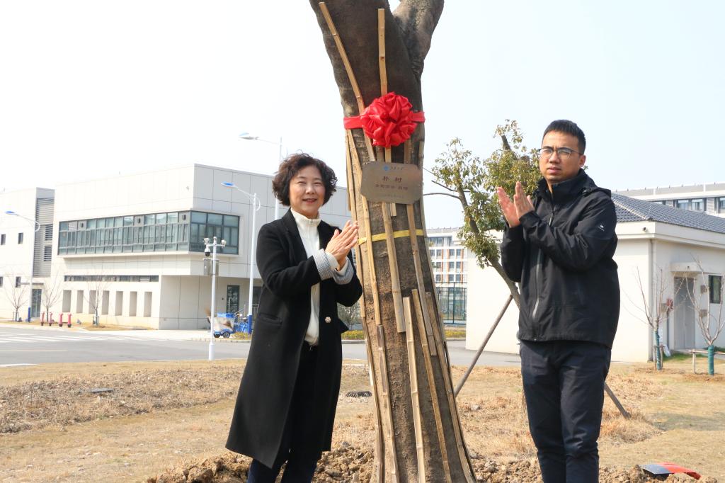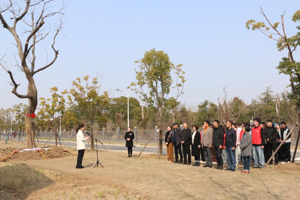 王珏代表江阴霞客湾校区全体师生致辞,向长期关心支持校区建设的青阳镇党委政府、青阳商会及各界爱心人士致以崇高敬意和衷心感谢。她指出,“十年树木,百年树人”,此次栽种的不仅是绿化苗木,更是校地同心的友谊之树、见证成长的希望之树、承载使命的育人之树。朴树质朴坚韧、香泡树清香致远、玉兰亭亭玉立,既装点了校园景致,更寄托了校地携手育人的美好愿景。她郑重承诺,校区将悉心做好苗木日常管护,确保树木茁壮成长;同时以此次活动为契机,将生态文明理念融入育人全过程,引导全体师生厚植爱绿、植绿、护绿意识,持续深化校地融合发展,以优质办学成效回馈地方厚爱,让校地友谊之树常青、发展之路绵长。