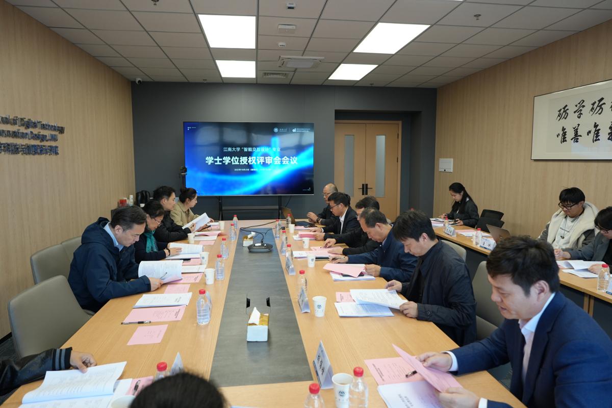 近日,江南大学江阴霞客湾校区数字科技与创意设计学院召开智能交互设计专业学士学位授权评审会。上海交通大学、北京邮电大学、南京艺术学院、南京航空航天大学等高校专家和企业代表共同参会。会议由学院副院长胡伟峰教授主持。